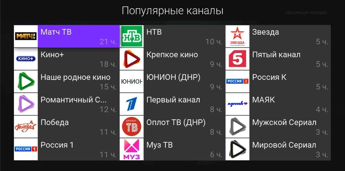 Где найти статистику:На тюнере откройте «Меню» → «Приложения» → «Популярные каналы».